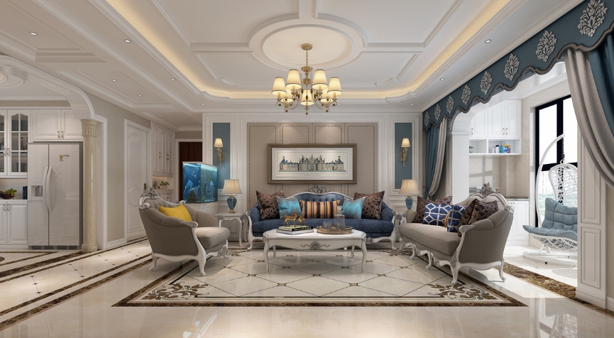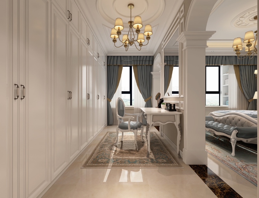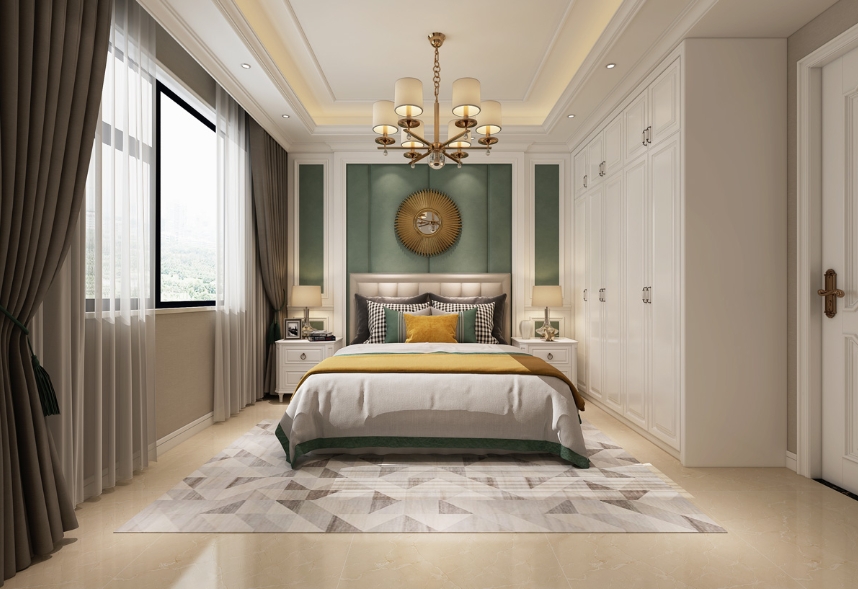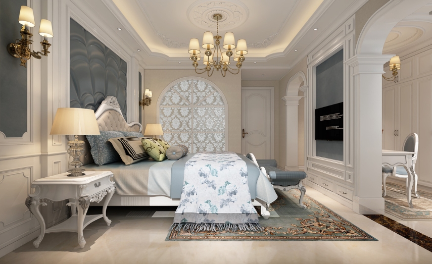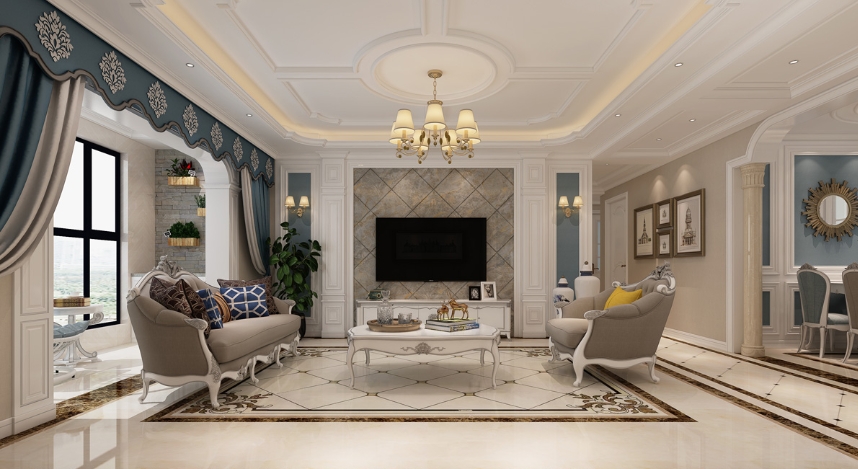 简欧风格装修融合欧式的古典质感与现代的简约大气 ,主要体现多元化与实用性两个特征,骈弃了一般花哨的修饰。整个房间的画面感,简约统一。
